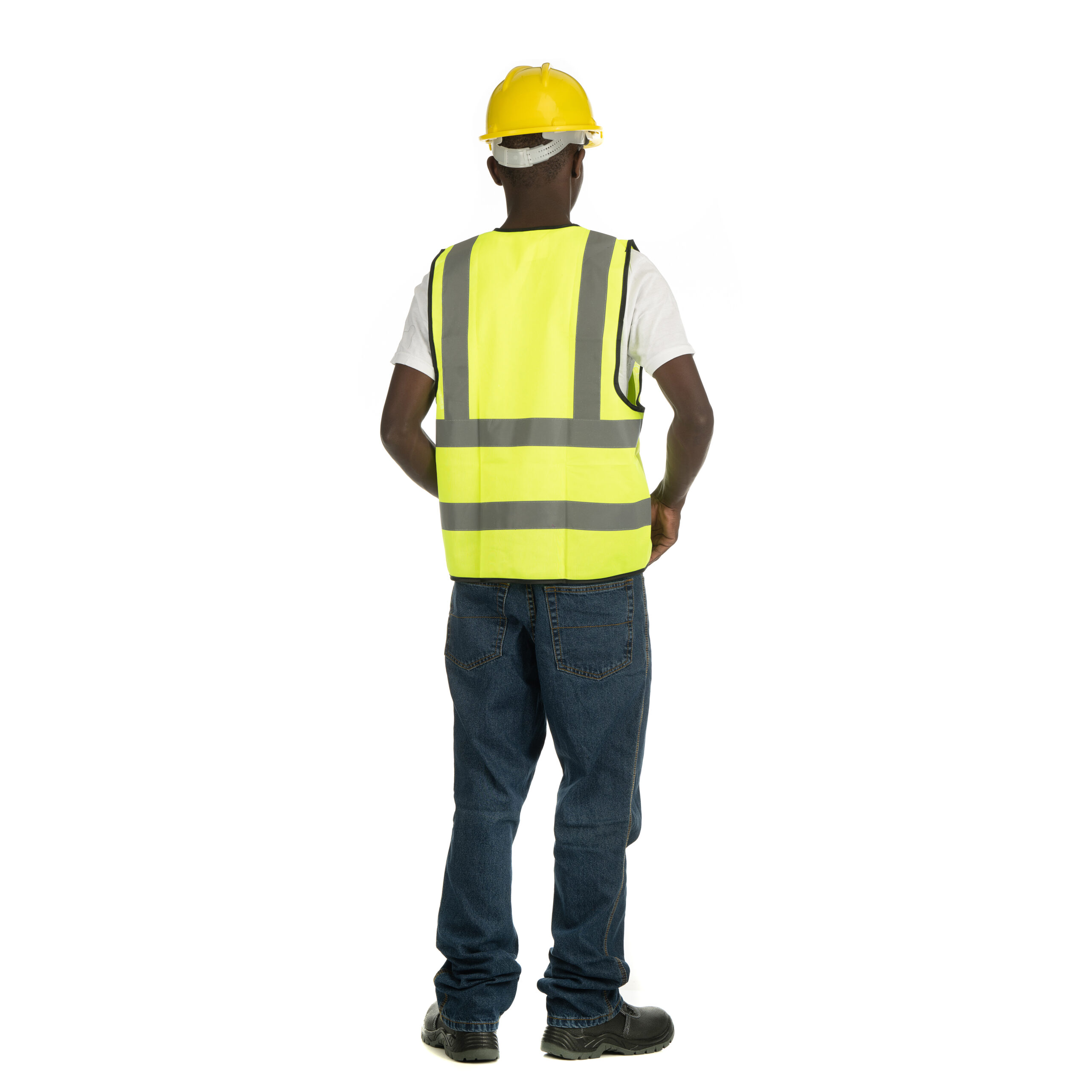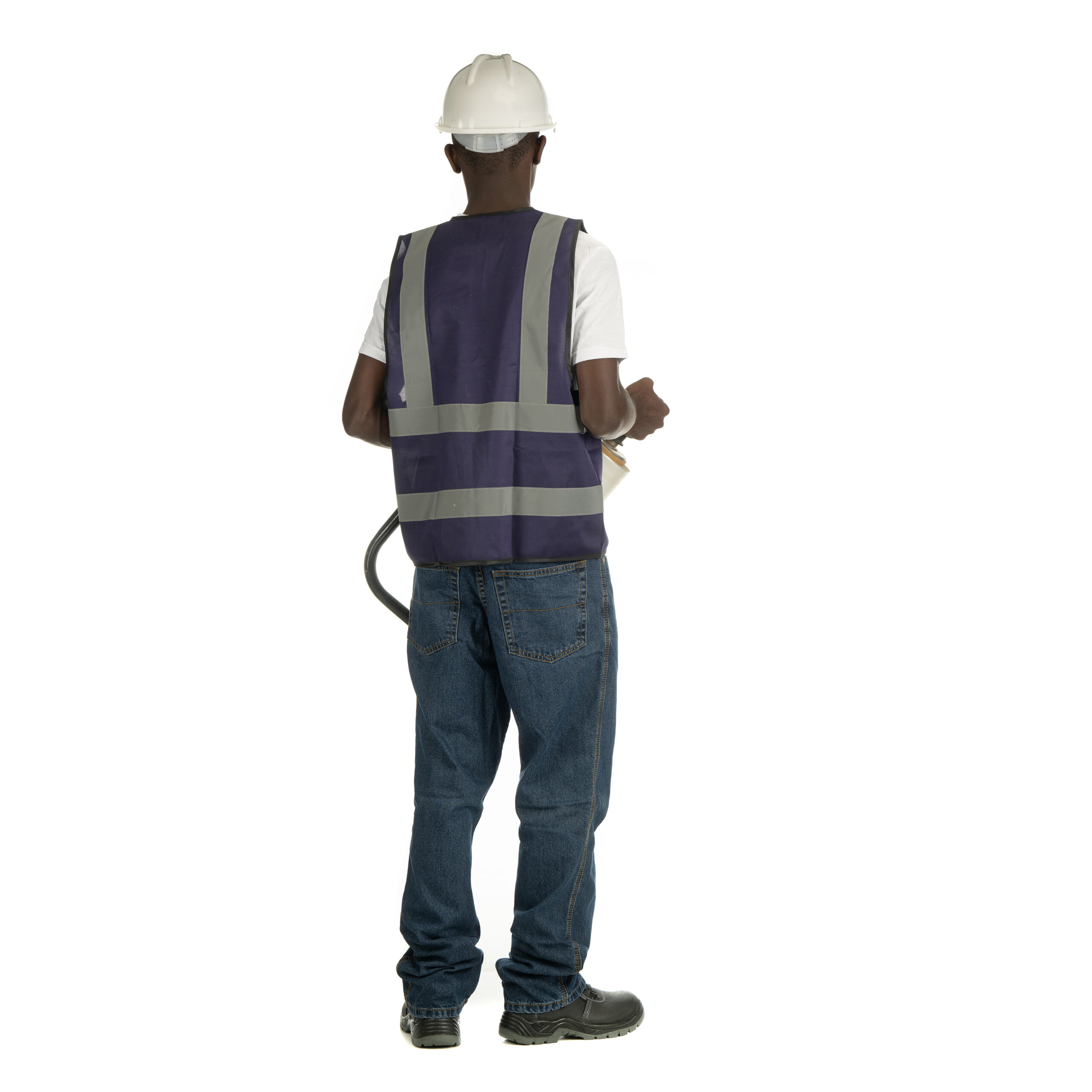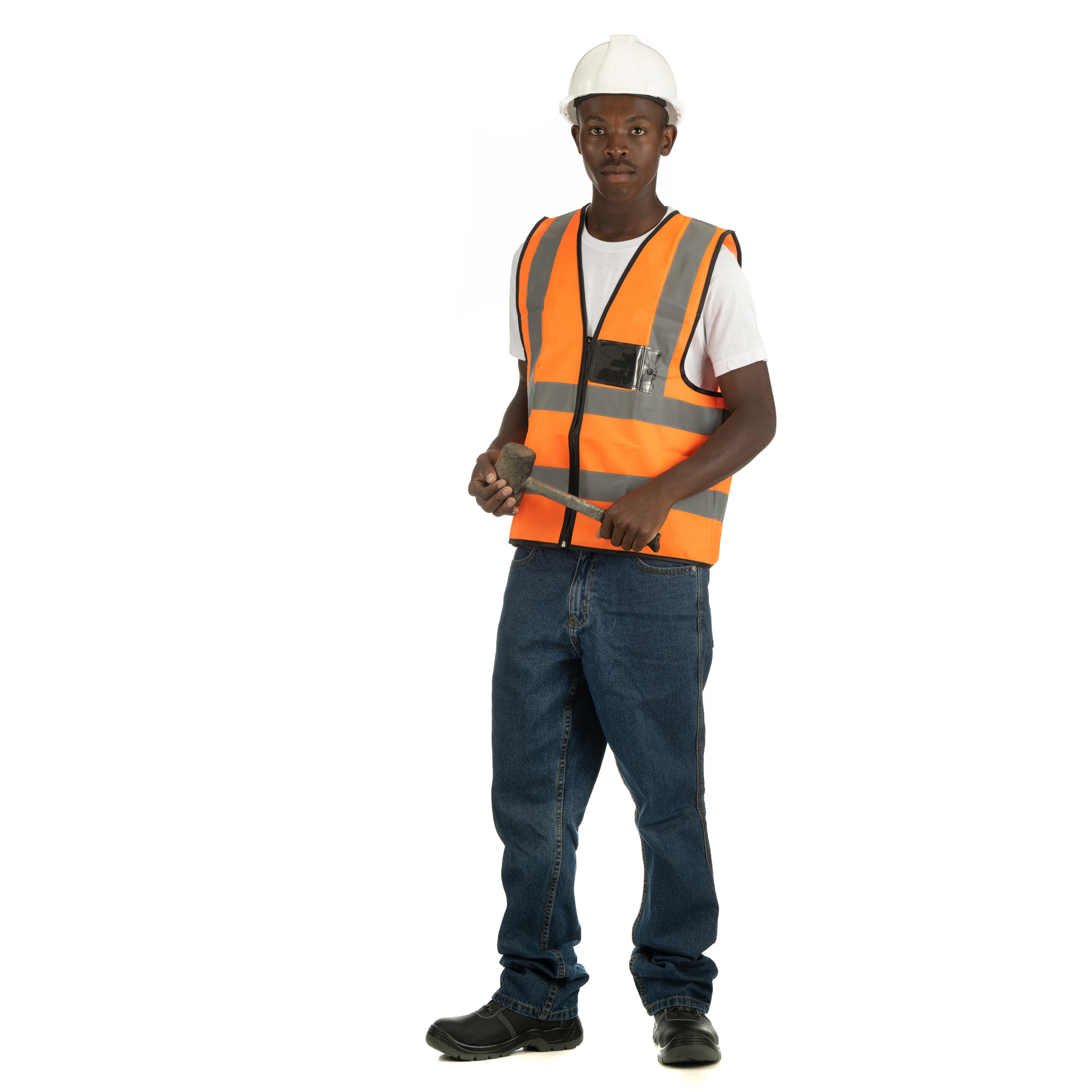 Reflective vest Lightweight waistcoat with ID pocket Full zip front Front and back reflective tape 120 gsm Available in sizes Small -5XL Complies with EN471